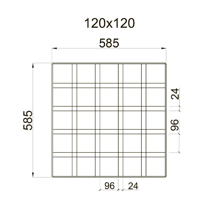 Грильято GL-24 PRIM 120x120, высота 34 мм, ширина 24 мм, супер-хром — это стильное и долговечное решение для создания потолков, которые придадут вашему интерьеру современный и роскошный вид.