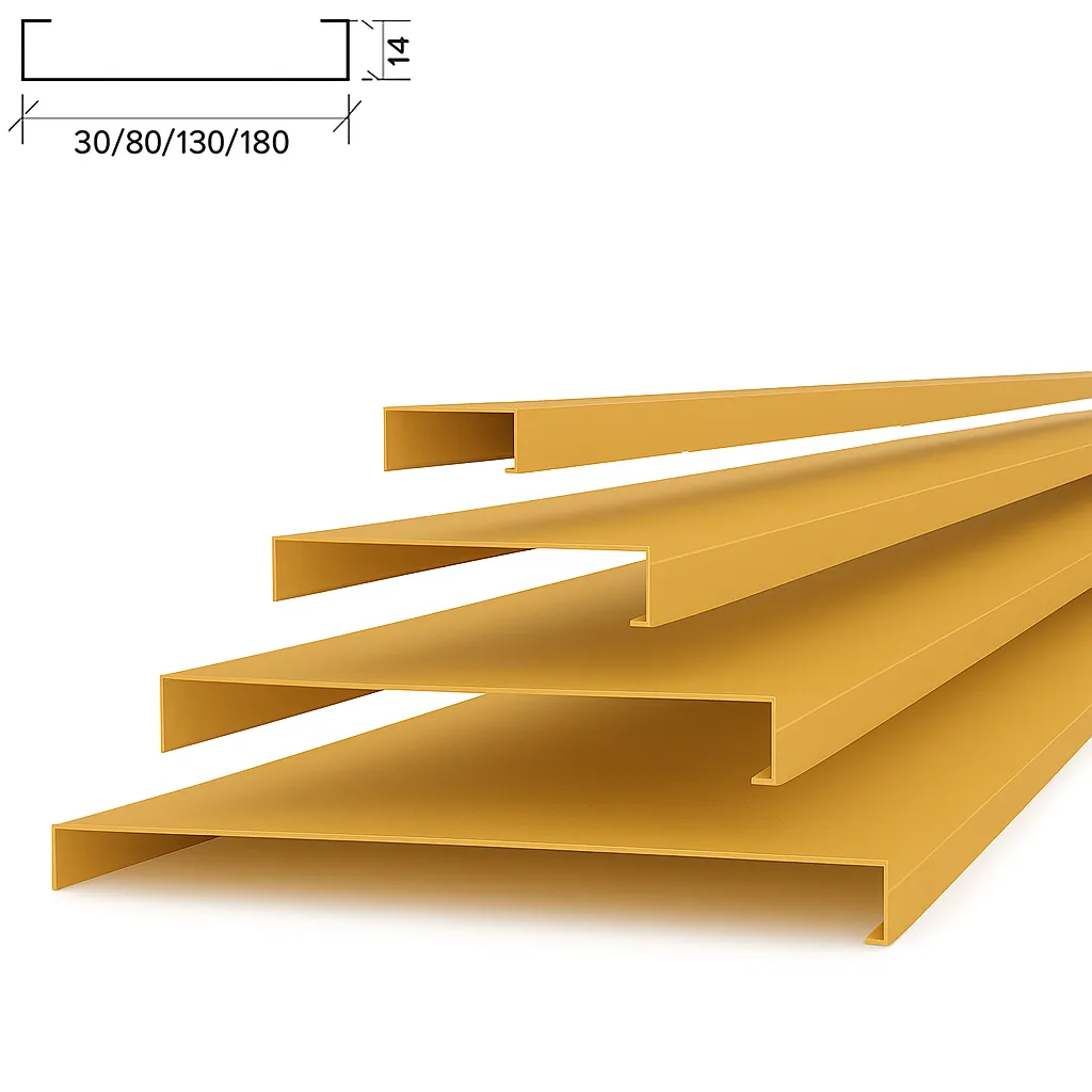 Албес A80SV суперзолото — это потолочная рейка с прямоугольным профилем 80×14 мм, выполненная из алюминия и окрашенная в насыщенный золотистый цвет. Эффект «суперзолото» придаёт интерьеру престиж и визуальную яркость. Система установки — открытая, на гребёнку BTS.