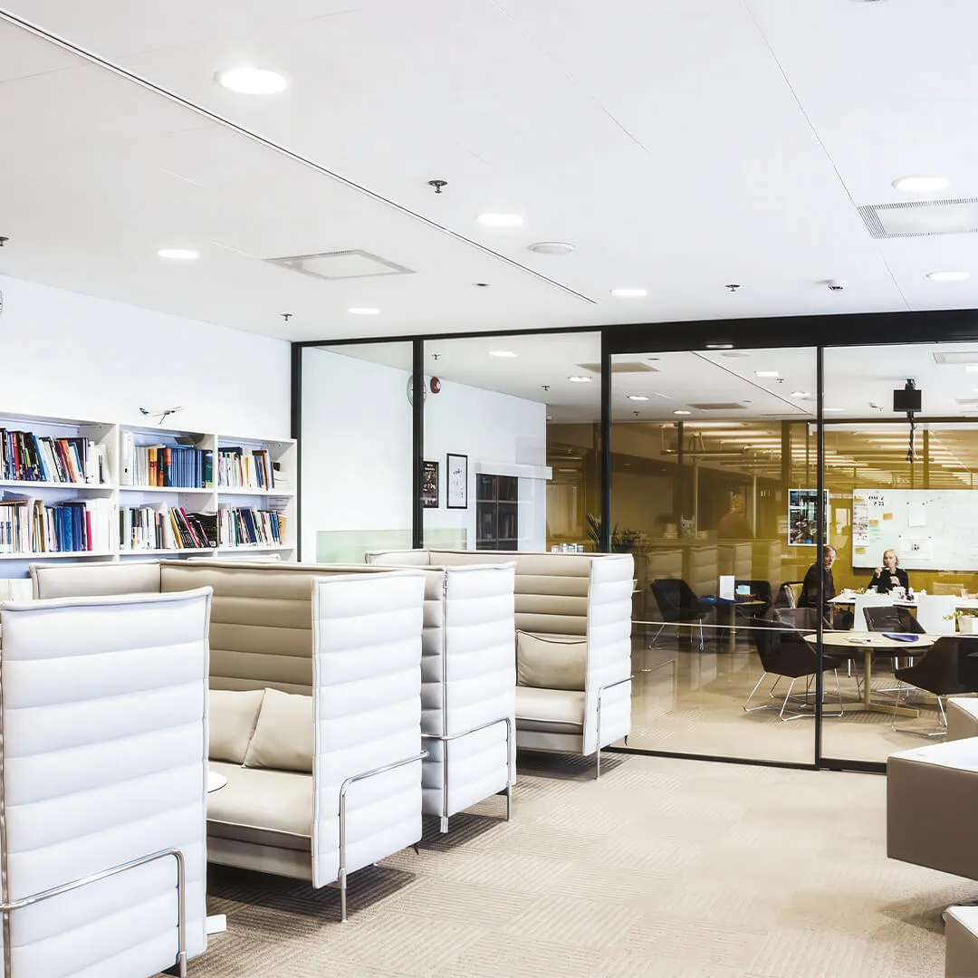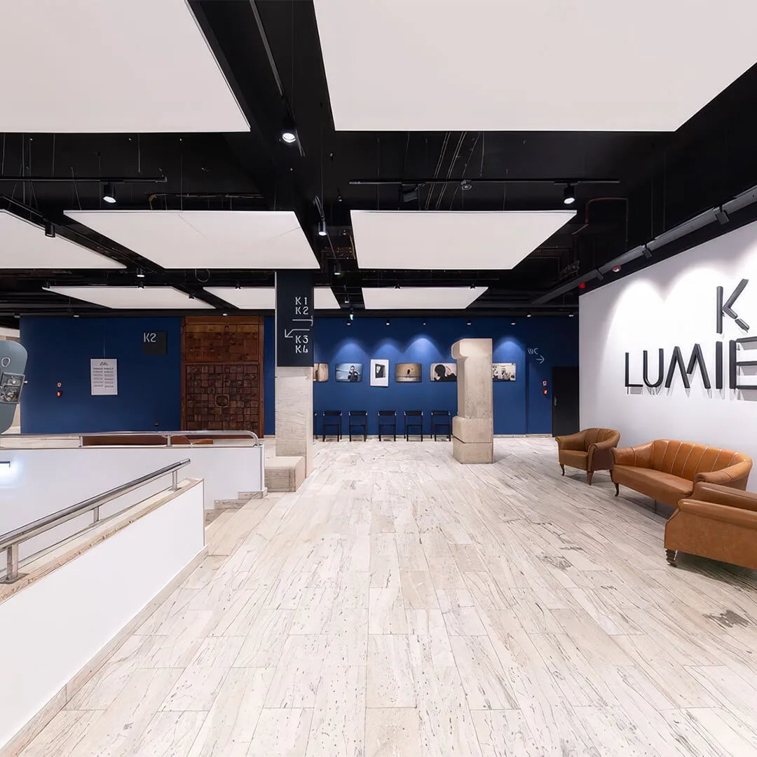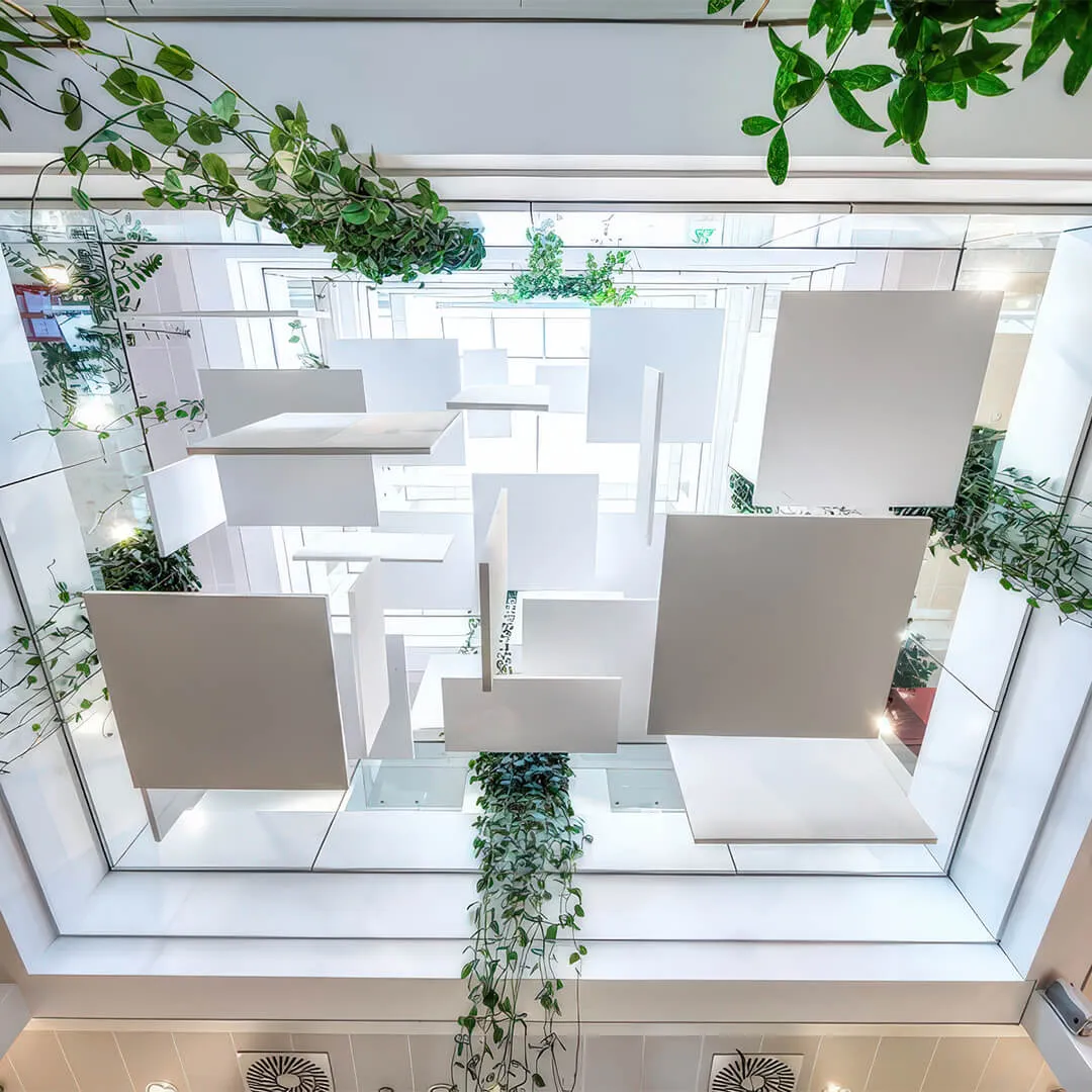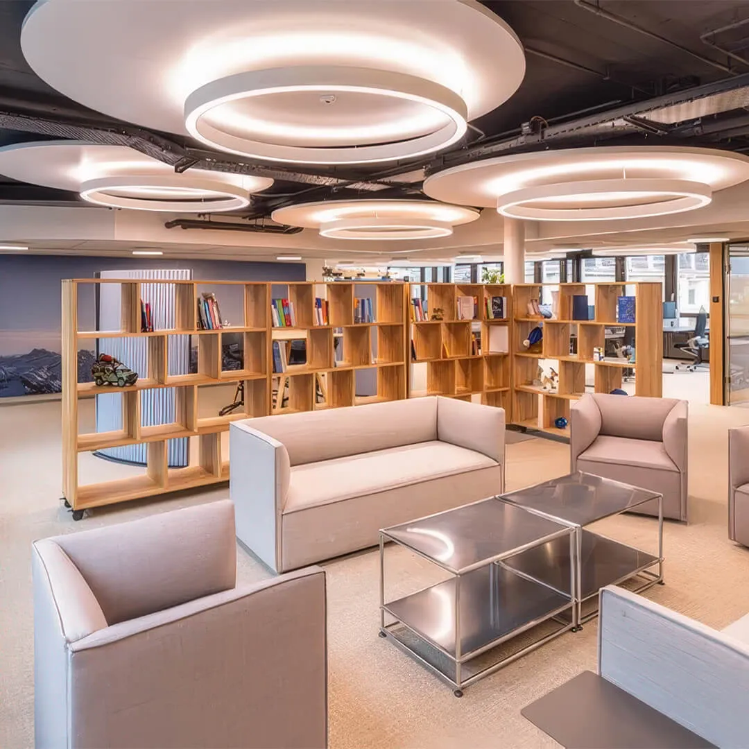 • Системы для открытых пространств: подвесные панели и облака, которые эффективно снижают шум в больших помещениях.