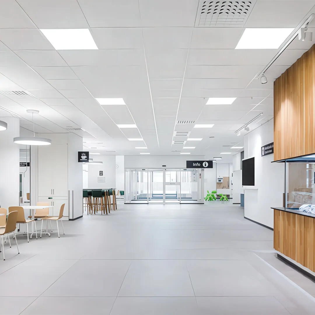 • Акустические потолочные панели: обеспечивают улучшение звукоизоляции и поглощение шума.